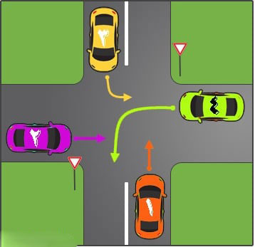 - اگر دو یا چند وسیله نقلیه به طور همزمان از چند مسیر متفاوت به یک تقاطع همعرض برسند، حق تقدم همیشه با خودروی سمت راستی است.