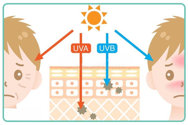 UVA همان اشعه‌ای است که که طول موج بیشتری داشته و باعث پیری پوست می‌شود. UVB طول موج کمتری داشته و به سوختگی پوست منجر می‌شود. فاکتور SPF، میزان محافظت از پوست در برابر اشعه UVB را نشان می‌دهد که به این ترتیب خواهد بود: